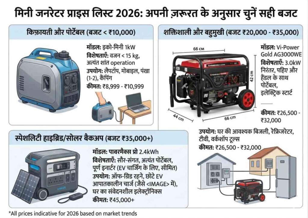 - MiNi Generator Price in India 2026: 3kVA से 7kVA तक की कीमत और फीचर्स