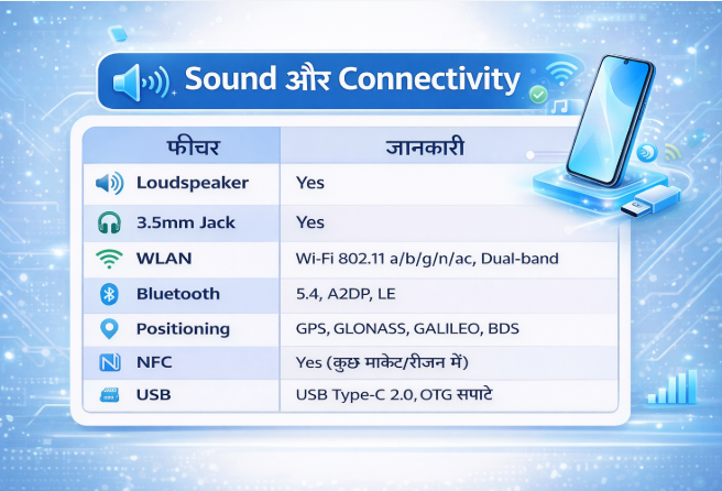 - रिवर्स चार्जिंग (10W): आप इस फोन का उपयोग पावर बैंक की तरह भी कर सकते हैं और दूसरे छोटे डिवाइस (जैसे ईयरबड्स) को चार्ज कर सकते हैं।
